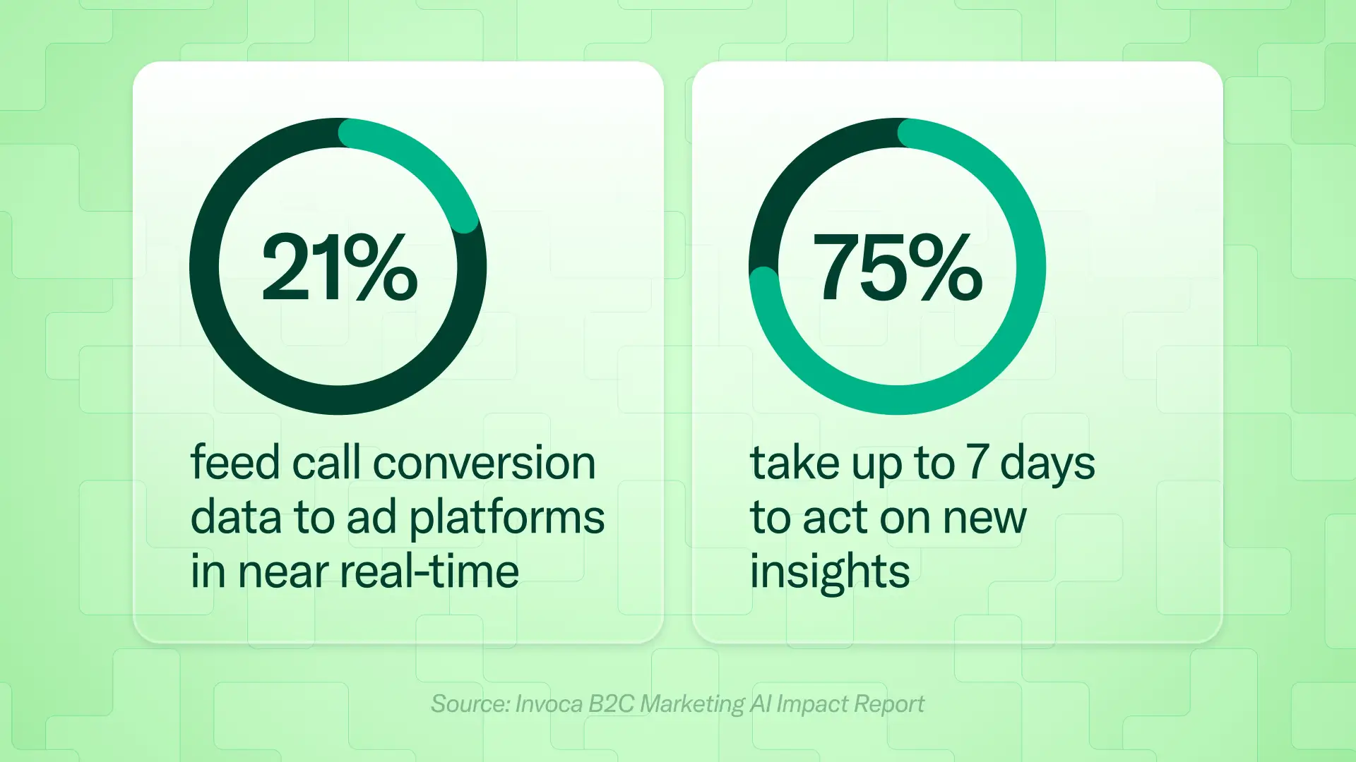Meanwhile, only 21% of organizations can feed call conversion data to ad platforms in near real-time, and 75% take between 2 and 7 days to act on new insights from sources such as phone conversations. When optimization signals are delayed by a week, you're spending today's budget on yesterday's picture of demand.