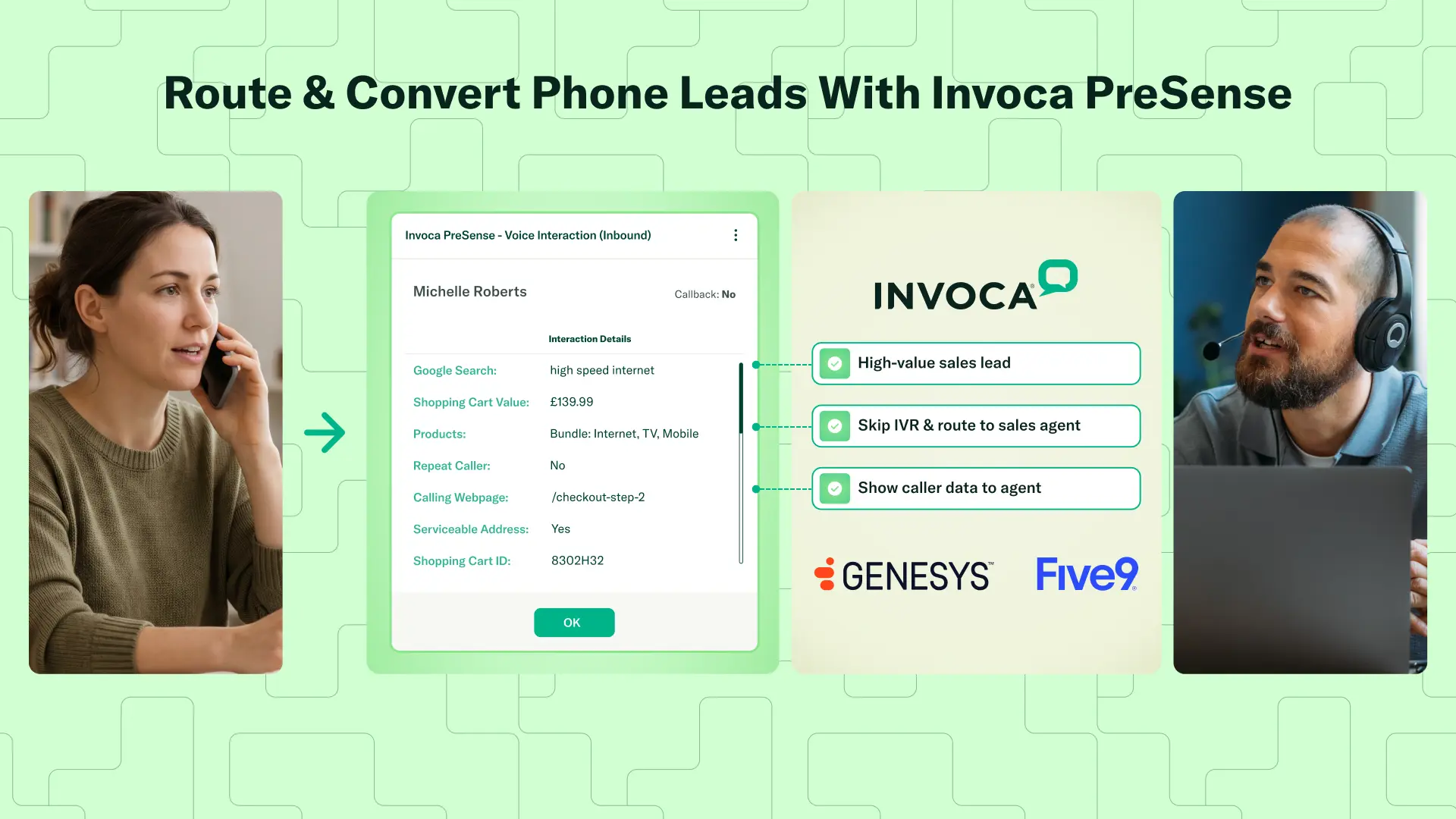 PreSense then gives the contact centre agent insights about the caller’s digital journey (such as the ad they clicked, pages they viewed, and items they placed in a cart) before the call begins. Having this data leads to more efficient call handling and outcomes — in many cases, PreSense alone has doubled a business’s call conversion rates.