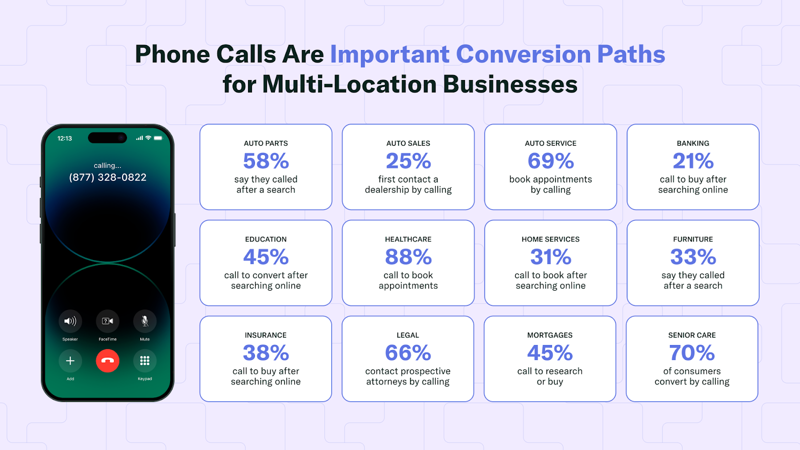 When consumers search for a business location or healthcare provider near them, they often contact the business by phone. Imagine somebody shopping for a car, an accountant, a plumber, or a storage unit. Or someone who needs to book an appointment to fix their furnace, repair their brakes, tour a rental property, or see a doctor or dentist. Most people find them online, often on their smartphones, and they call to set an appointment, plan a visit, or get a quote.