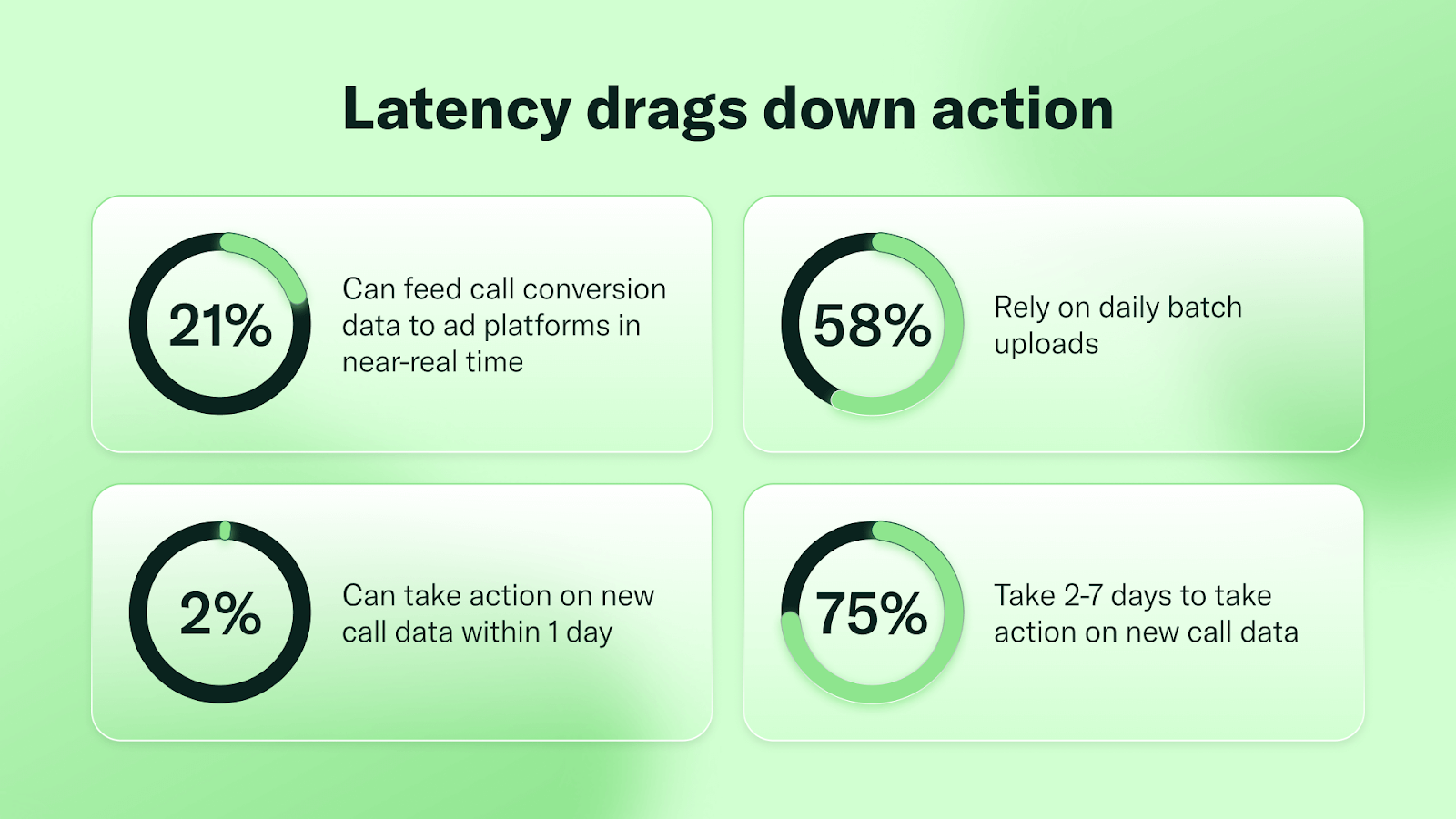 According to our research report, only 21% of organisations feed offline conversions back to their ad platforms in near real time. The majority rely on daily batch uploads (58%) or even weekly or monthly cycles (20%). In other words, marketers are investing in AI-powered platforms designed for real-time optimisation, then feeding them stale data.
